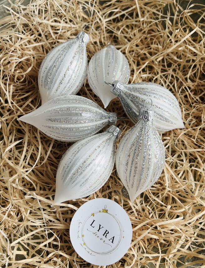 Vánoční paprsky - perleťově stříbrná - olivy 6ks