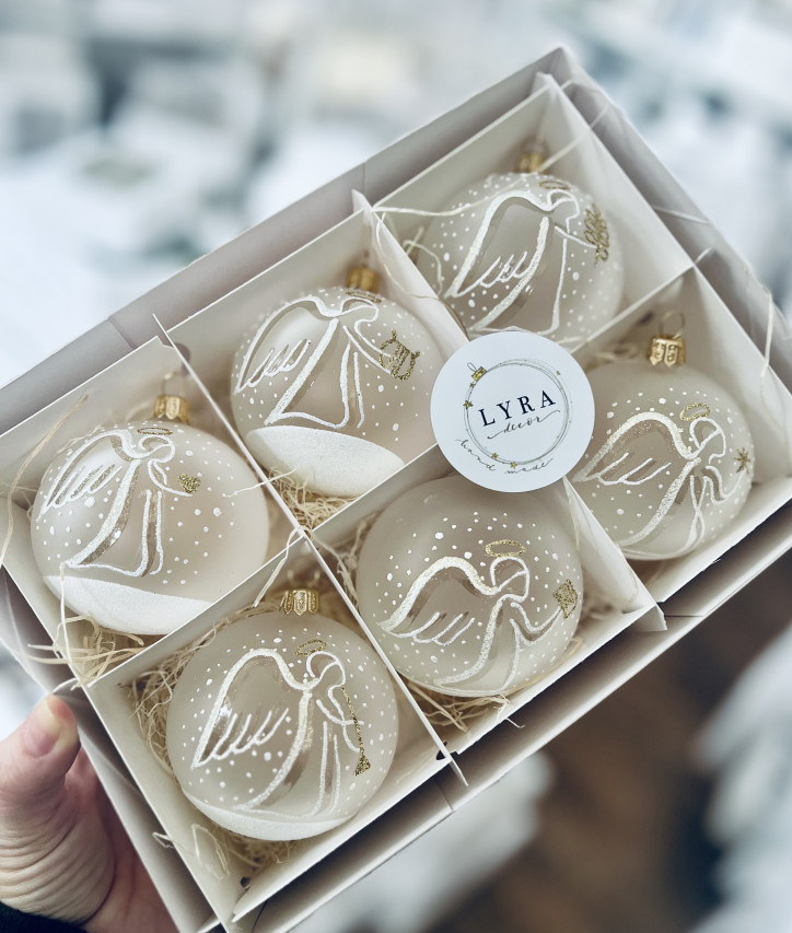 Sada s něžnými motivy andělíčků. Je opravdu výjimečným a atypickým zpestřením výzdoby Vašeho svátečního interiéru a stromečku pro naše milované.